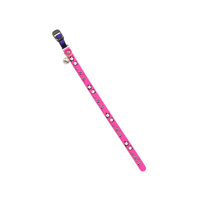 Fabricado en caucho natural. Tiene un elástico interno para un ajuste perfecto al cuello de tu mascota. El cascabel te ayudará a tener controlado a tu gato en cualquier momento.