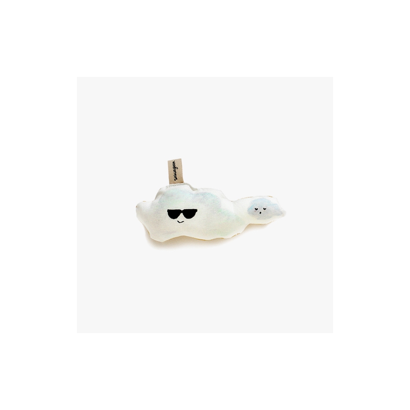 Es un juguete en forma de nube para perro, con sonido, 100% algodón, de fácil limpieza.