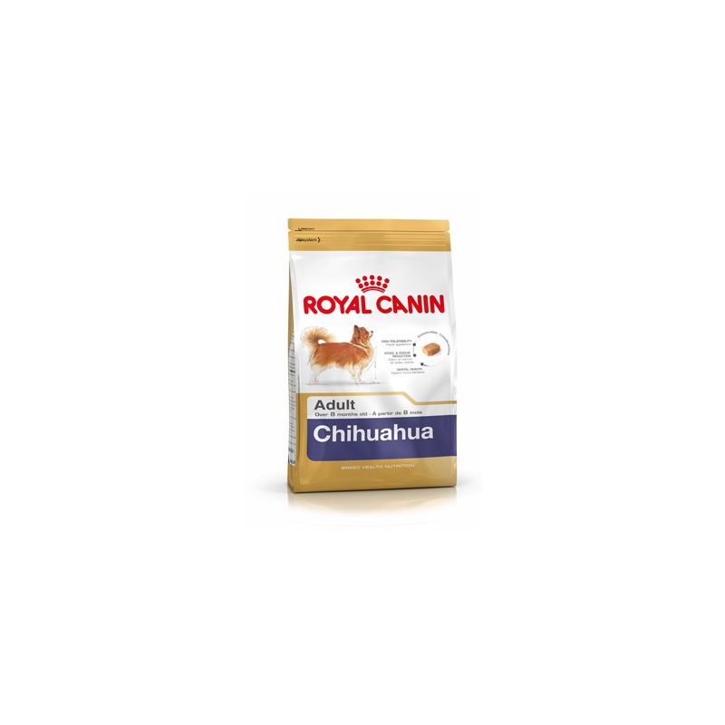Pienso Royal Canin Chihuahua ADULT a partir de los 8 meses. ¿ Por qué es importante comprar este pienso para tu Chihuahua adulto ?- Porque aporta grasas y proteínas que ayudan a cubrir las necesidades de un crecimiento corto y rápido. - La croqueta se adapta a la diminuta mandíbula del Chihuahua cachorro.- Porque estimula los apetitos más exigentes gracias a su irresistible olor y sabor.- Garantiza una buena digestión y ayuda a reducir el volumen y olor de las heces.- Porque el pienso de perro Royal Canin refuerza las defensas naturales de su perro.* Las siglas “L.I.P.” se refieren a la selección de proteínas atendiendo a su alta asimilación, con una digestibilidad superior al 90%. L.I.P. es por tanto una garantía de muy alta digestibilidad y de buena salud del colon. ¿ Por qué elegir el pienso Royal Canin por razas ? Cada raza tiene sus particularidades, el Bulldog Francés sufre comúnmente dermatitis, los Yorkshires sufren de las articulaciones, los Pastores Alemanes de la cadera, etc... Royal Canin Breed es una gama completa de alimento para perros formulada para satisfacer las necesidades según las razas de perros. Desde 2002, Royal Canin se ha comprometido con las necesidades específicas de ciertas razas, no solo buscando su correcta nutrición, sino también en búsqueda de la prevención de riesgos de salud y mejorando su longevidad.Recipiente :